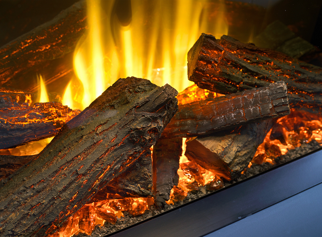 De haard is voorzien van het innovatieve Optiflame® vuursysteem, wat zorgt voor een realistisch en sfeervol vuurbeeld. Geniet van het zicht op de het vlammenspel en de gloeiende houtstammen, dat samen een prachtig decoratief vuurbed vormt.